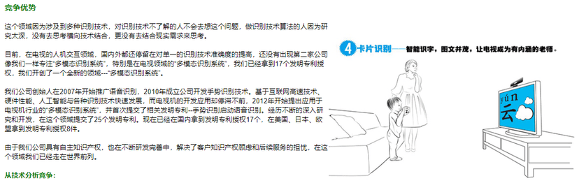 国华识别是一家专注于智能电视终端设备人机交互技术的研发平台。公司致力于有机融合手势识别、语音识别、手写识别、声纹识别等技术研究,以及提供硬件阵列麦克风和摄像头的软硬件方案。公司深入研究电视机交互所需的识别技术,联合多种类识别技术算法的专家团队,由相关行业技术专家开发了其识别技术算法,再把各种识别技术有机结合起来,成功研发出“电视多模态识别系统”。