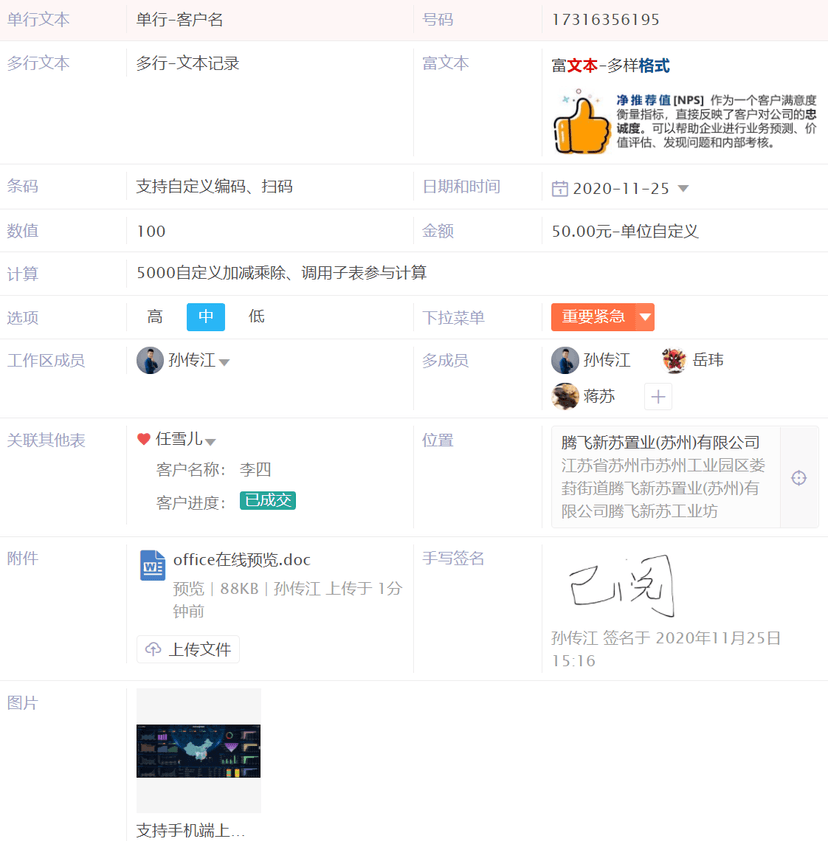 用数据重新定义协作,一款多人协作管理的表格制作工具,海量模板任你选择,开箱即用的数据列表,支持20多种字段类型,满足10多种个性化操作需求,支持批量操作、协同编辑、实时计算、多表关联引用、主子表结构等,还支持分享表格数据、权限设置、自动化工作流、通知提醒等功能,通过简单拖拉拽可以快速自定义表单页面,收集管理内外部业务数据,让多部门分权限协作,既高效又安全,为企业提供一个全闭环的移动办公与数据管理系统。