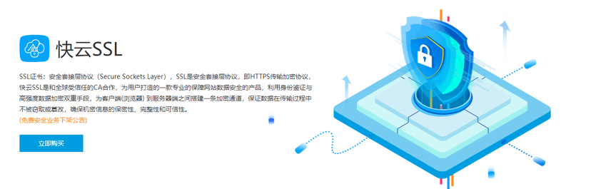 SSL证书:安全套接层协议(Secure Sockets Layer),SSL是安全套接层协议,即HTTPS传输加密协议,快云SSL是和全球受信任的CA合作,为用户打造的一款专业的保障网站数据安全的产品,利用身份鉴证与高强度数据加密双重手段,为客户端(浏览器) 到服务器端之间搭建一条加密通道,保证数据在传输过程中不被窃取或篡改,确保机密信息的保密性、完整性和可信性。 产品特性: 数据加密 开启HTTPS绿色加密通道,网站数据的加密传输,防止网站核心数据被窃取或篡改。 信任背书 网站身份的实名认证,防钓鱼,真假网站一目了然!有效避免钓鱼、欺诈网站等侵害,增加访客的信心! 防流量劫持 防止运营商的流量劫持,阻止弹窗广告,访问更友好、更安全! 增加网站排名 搜索引擎会优先收录https的页面,有利于SEO优化,提高网站排名。 发布苹果APP的通行证 2017起苹果所有APP必须支持HTTPS安全连接,未启用HTTPS将被强制从苹果商店下架!