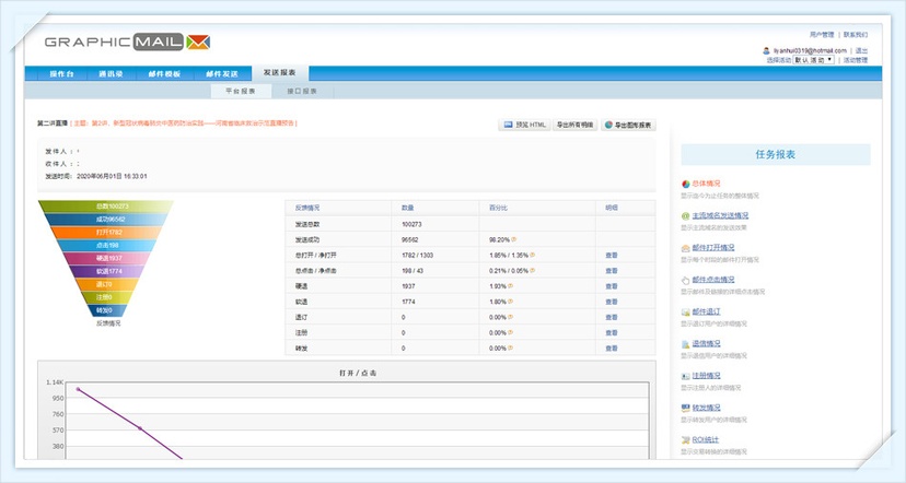 海量邮件模板:海量精美免费模板和易用的编辑器能帮您轻松创建制作邮件 群发成功率高:技术领先并与邮箱服务商的良好沟通,确保了优秀的送达率 数据跟踪分析:对邮件打开、链接点击、转发、退订情况的数据全面跟踪 社交平台发布:邮件页脚嵌入社交分享插件,整合社交营销,树立更好口碑 功能特性:稳定运行10年、送达成功率高、进收件箱率高、海量IP支持、模板编辑器、多种语言版本、精细数据报表、整合社交分享